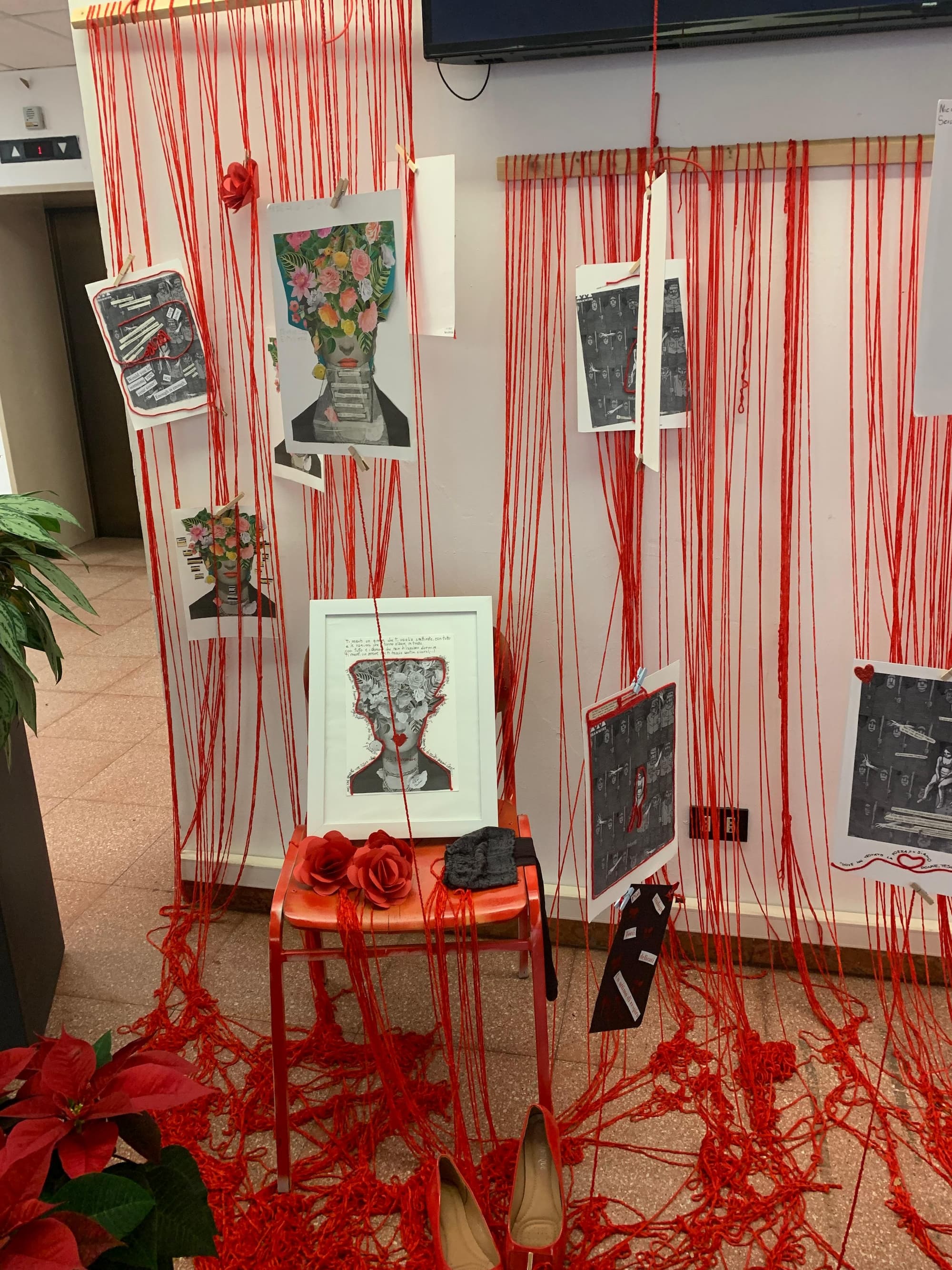Sulla base di questo racconto di vita la classe 1Q ha analizzato alcuni quadri dell’artista accompagnati dalla lettura della poesia Ti meriti un amore, dopodichè, portati in aula polivalente, hanno creato sulla base di un’immagine a colori di Frida su cartoncino rigido, delle bellissime poesie o messaggi sul tema delle violenza contro le donne, utilizzando dei ritagli di giornale o libri in disuso.