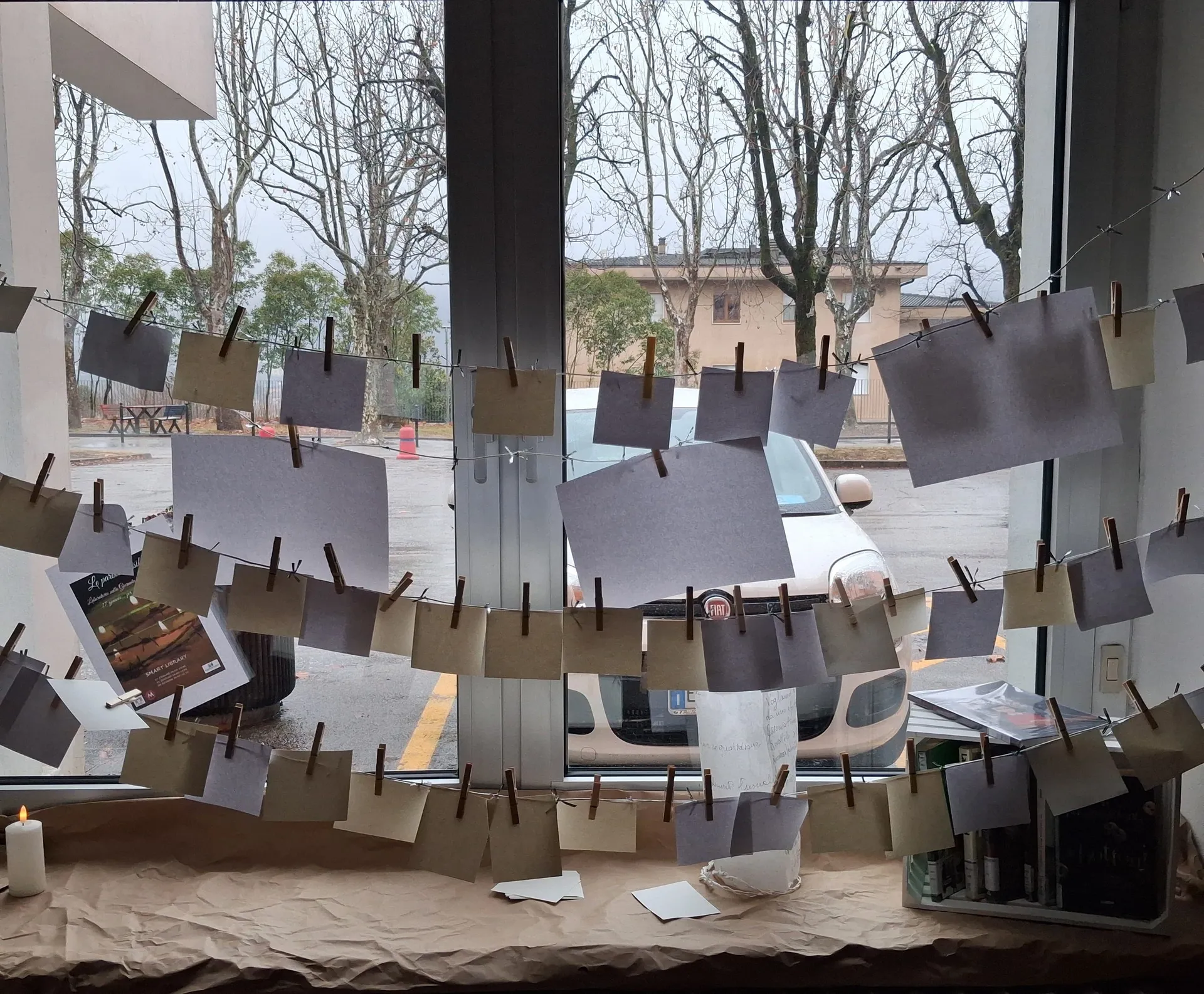 Per il biennio è stato organizzato il laboratorio “Le parole invisibili”: ogni studente ha scelto una parola simbolo di luce nel buio, scritta con una penna a inchiostro invisibile. Le parole, posizionate su un filo spinato, hanno unito il ricordo del dolore alla speranza, illuminate da una piccola lucina.