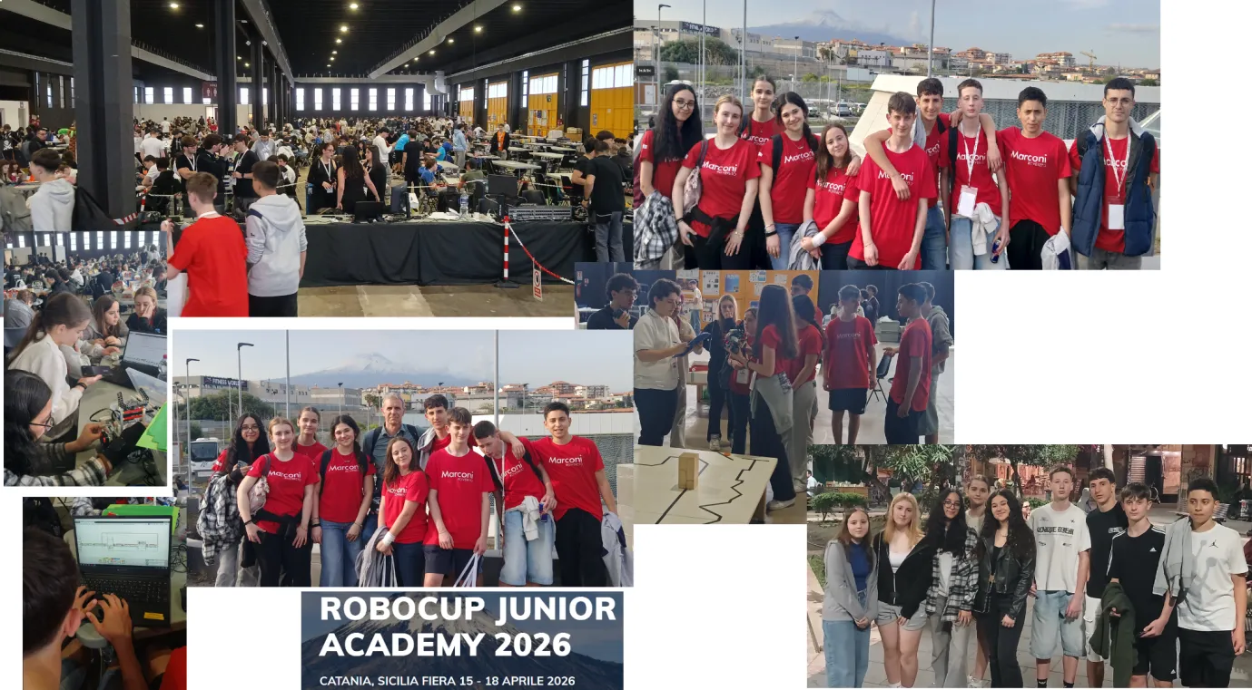 Nell’mmagine di copertina ci sono le due squadre del Marconi alle finali nazionali di Robocup Junior 2026